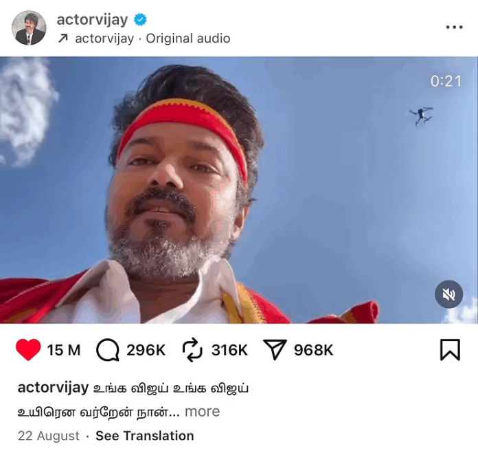 This achievement is not just about numbers it reflects Vijay’s ever-growing influence, both as a superstar who rules the silver screen and as a leader who is winning the hearts of the masses. With 15M+ likes,